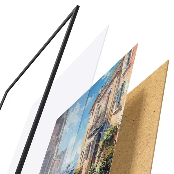 Plakāts sastāv no rāmja, pleksstikla, iespiestā attēla un skaidu plātnes pamatnes. Plakātu var uzreiz piekarināt pie sienas, pateicoties aizmugurē esošajiem stiprinājumiem.