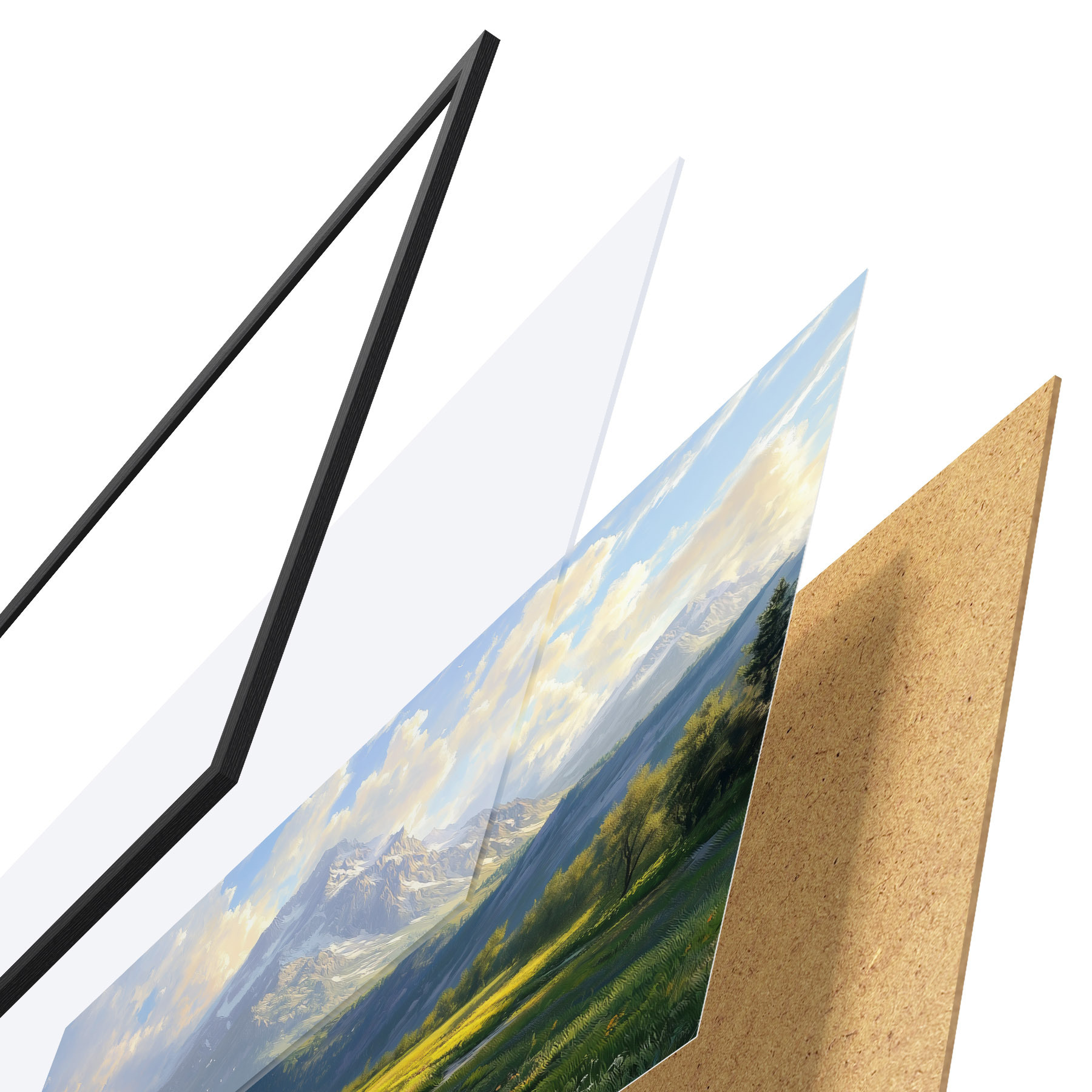 Plakāts sastāv no rāmja, pleksstikla, iespiestā attēla un skaidu plātnes pamatnes. Plakātu var uzreiz piekarināt pie sienas, pateicoties aizmugurē esošajiem stiprinājumiem.