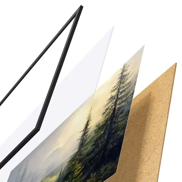 Plakāts sastāv no rāmja, pleksstikla, iespiestā attēla un skaidu plātnes pamatnes. Plakātu var uzreiz piekarināt pie sienas, pateicoties aizmugurē esošajiem stiprinājumiem.
