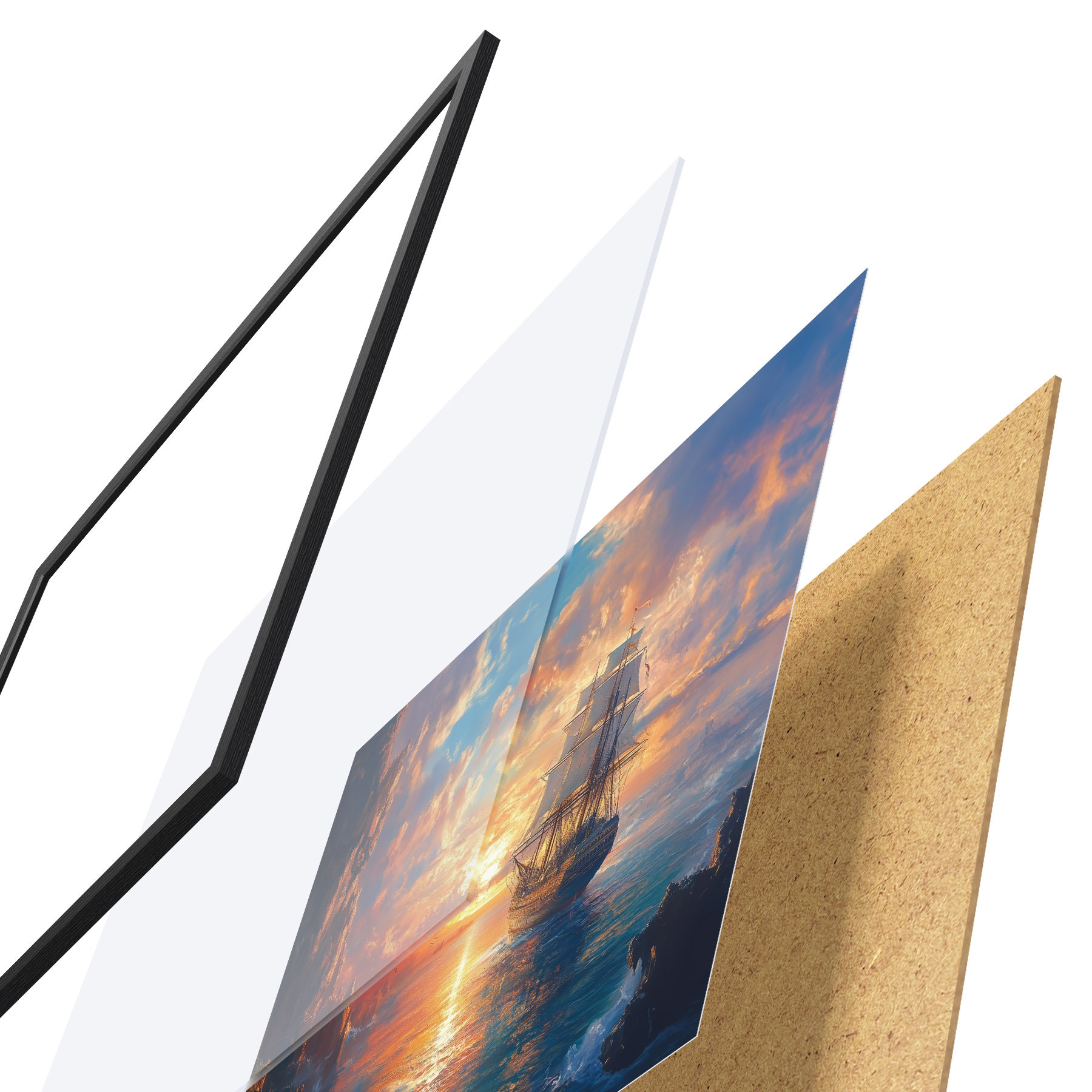 Plakāts sastāv no rāmja, pleksstikla, iespiestā attēla un skaidu plātnes pamatnes. Plakātu var uzreiz piekarināt pie sienas, pateicoties aizmugurē esošajiem stiprinājumiem.