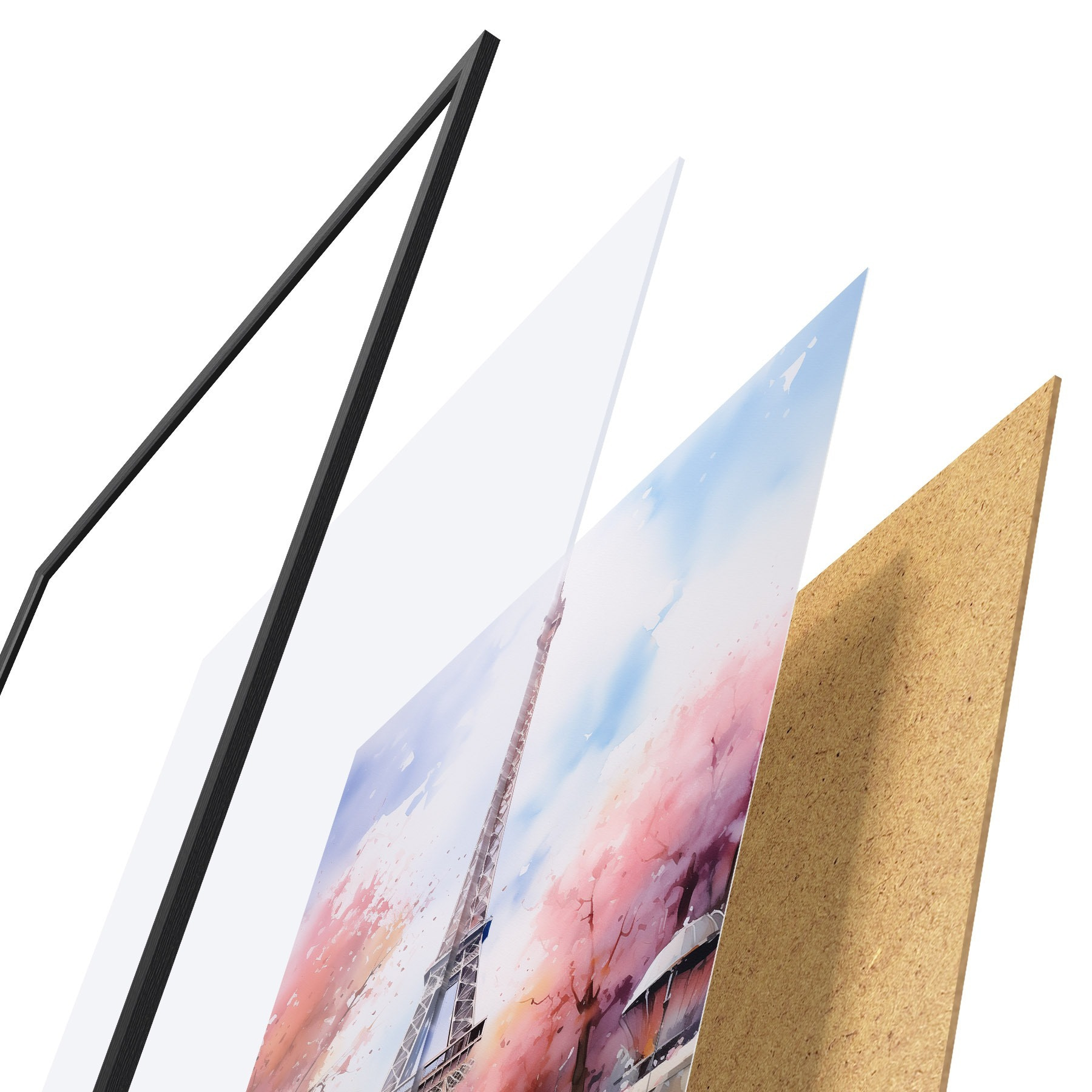 Plakāts sastāv no rāmja, pleksstikla, iespiestā attēla un skaidu plātnes pamatnes. Plakātu var uzreiz piekarināt pie sienas, pateicoties aizmugurē esošajiem stiprinājumiem.