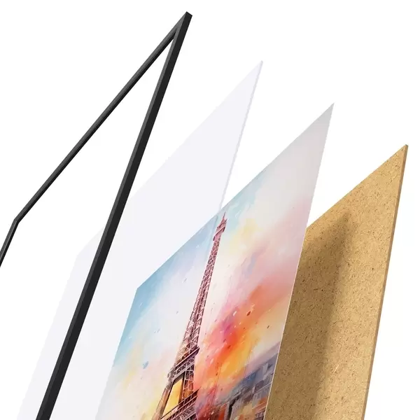 Plakāts sastāv no rāmja, pleksstikla, iespiestā attēla un skaidu plātnes pamatnes. Plakātu var uzreiz piekarināt pie sienas, pateicoties aizmugurē esošajiem stiprinājumiem.
