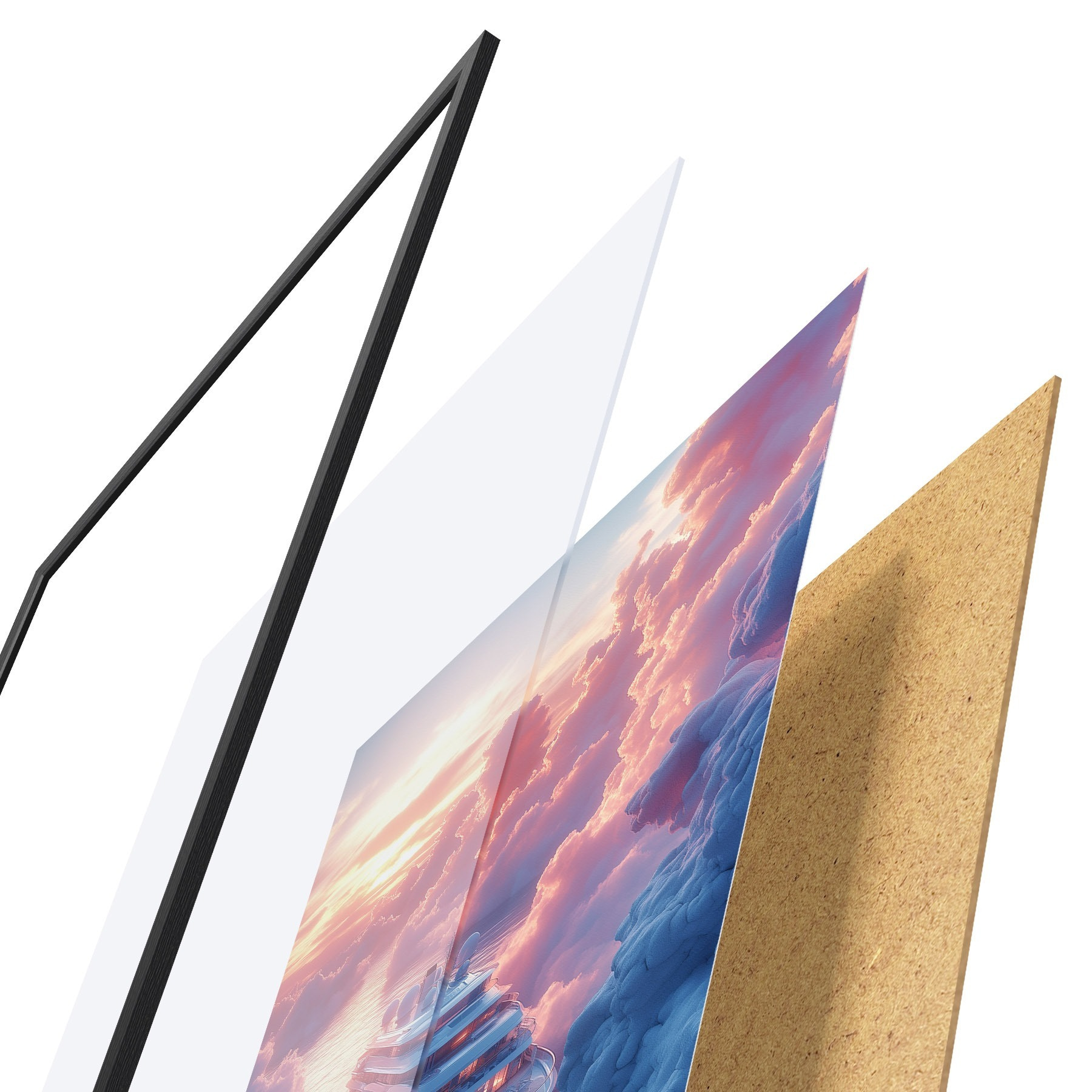 Plakāts sastāv no rāmja, pleksstikla, iespiestā attēla un skaidu plātnes pamatnes. Plakātu var uzreiz piekarināt pie sienas, pateicoties aizmugurē esošajiem stiprinājumiem.