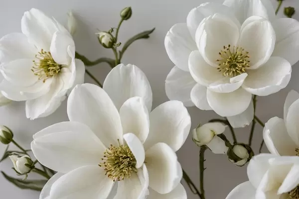 Plakāts Balti ziedi un kāti uz gaiša fona Nr f42097