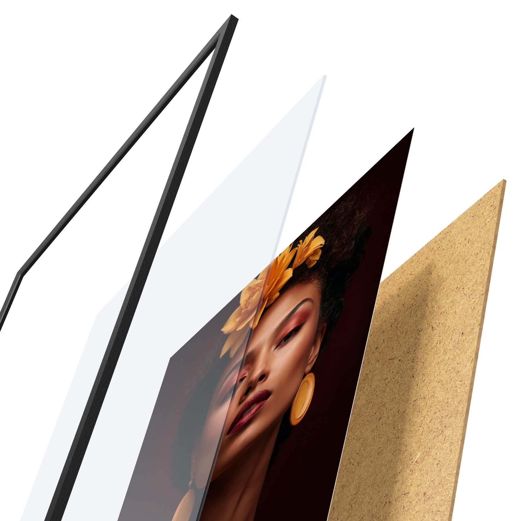 Plakāts sastāv no rāmja, pleksstikla, iespiestā attēla un skaidu plātnes pamatnes. Plakātu var uzreiz piekarināt pie sienas, pateicoties aizmugurē esošajiem stiprinājumiem.