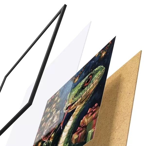 Plakāts sastāv no rāmja, pleksstikla, iespiestā attēla un skaidu plātnes pamatnes. Plakātu var uzreiz piekarināt pie sienas, pateicoties aizmugurē esošajiem stiprinājumiem.
