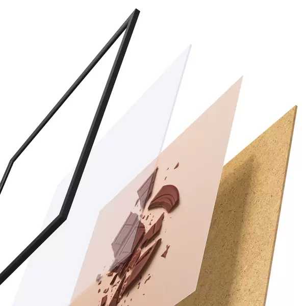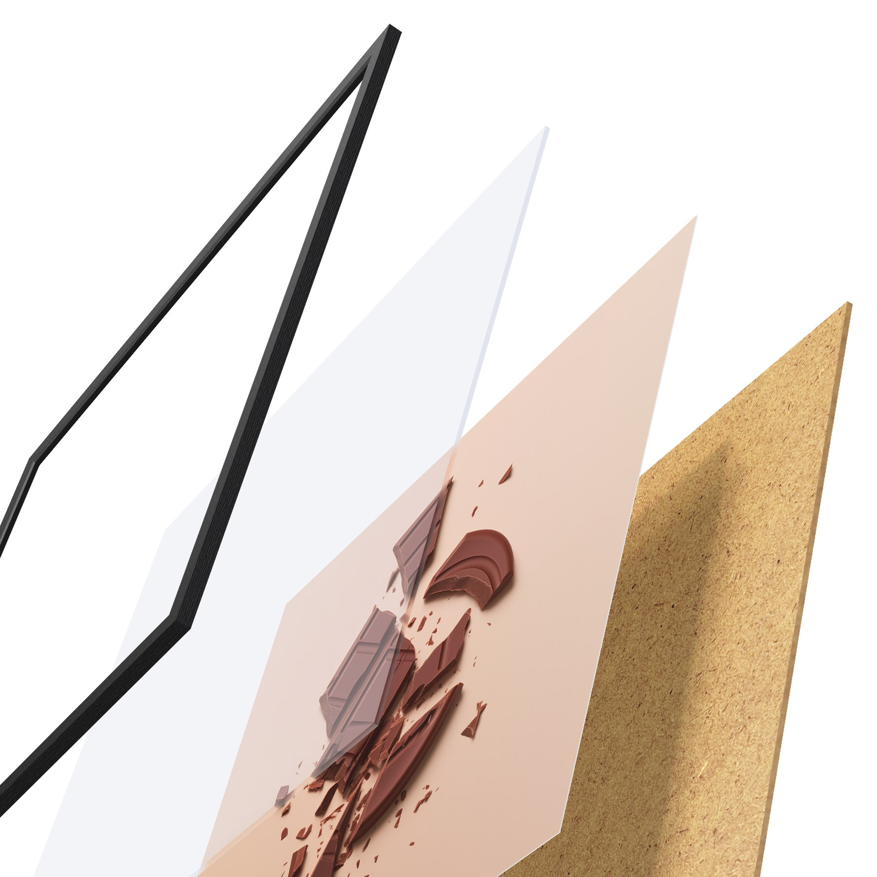 Plakāts sastāv no rāmja, pleksstikla, iespiestā attēla un skaidu plātnes pamatnes. Plakātu var uzreiz piekarināt pie sienas, pateicoties aizmugurē esošajiem stiprinājumiem.
