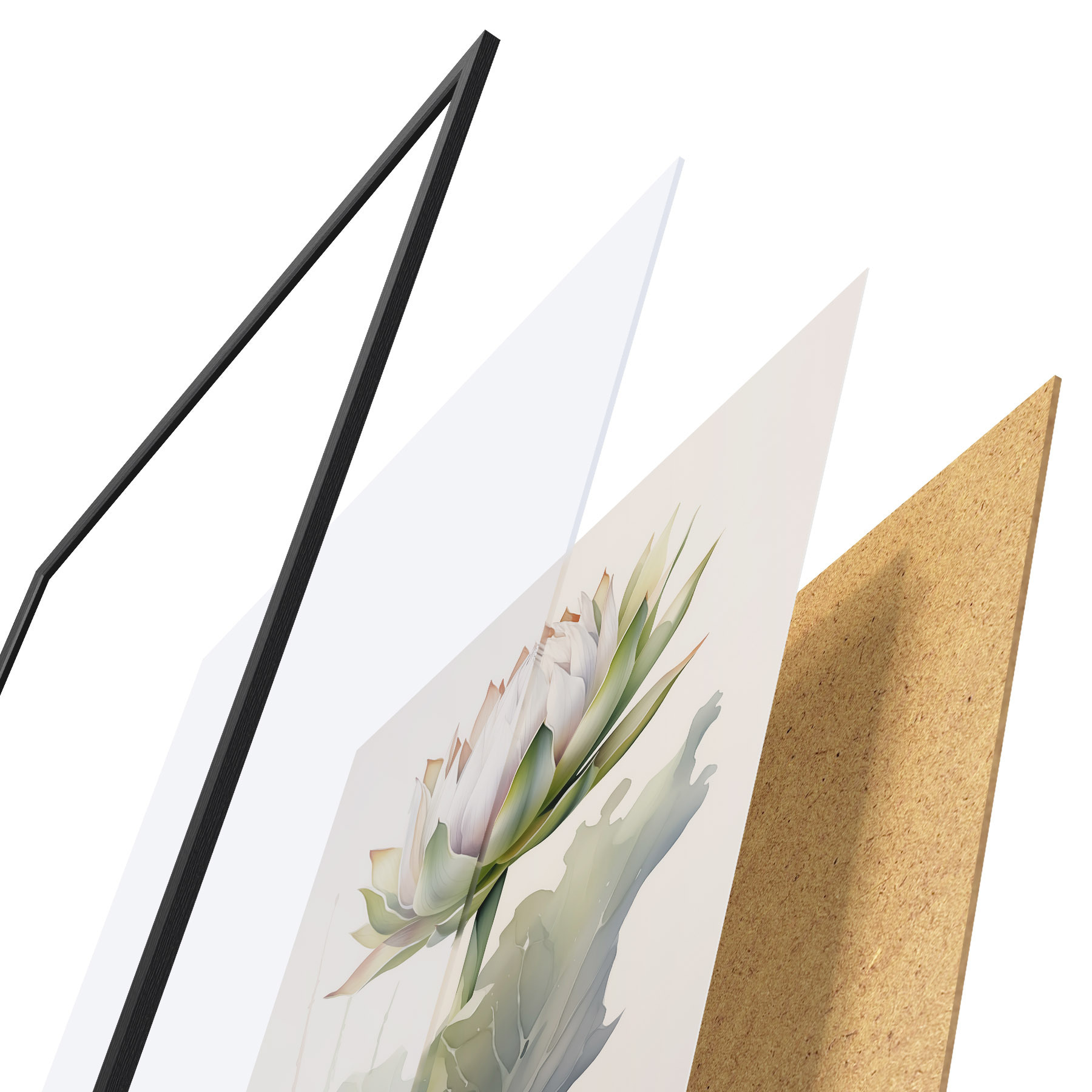 Plakāts sastāv no rāmja, pleksstikla, iespiestā attēla un skaidu plātnes pamatnes. Plakātu var uzreiz piekarināt pie sienas, pateicoties aizmugurē esošajiem stiprinājumiem.
