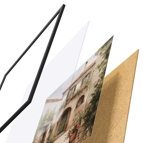 Plakāts sastāv no rāmja, pleksstikla, iespiestā attēla un skaidu plātnes pamatnes. Plakātu var uzreiz piekarināt pie sienas, pateicoties aizmugurē esošajiem stiprinājumiem.