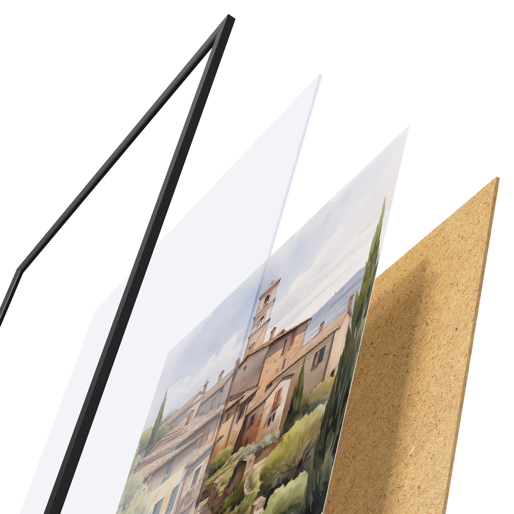 Plakāts sastāv no rāmja, pleksstikla, iespiestā attēla un skaidu plātnes pamatnes. Plakātu var uzreiz piekarināt pie sienas, pateicoties aizmugurē esošajiem stiprinājumiem.