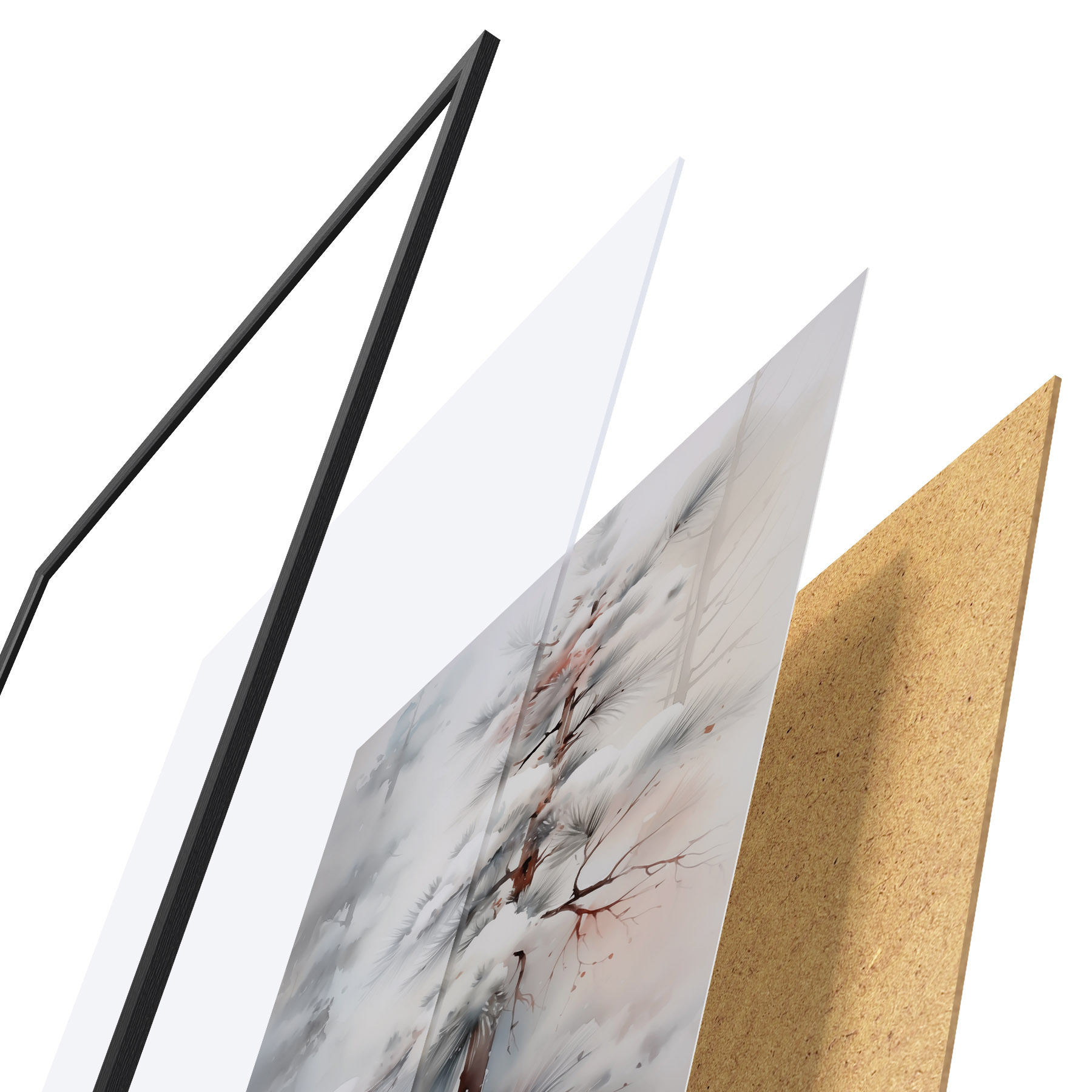 Plakāts sastāv no rāmja, pleksstikla, iespiestā attēla un skaidu plātnes pamatnes. Plakātu var uzreiz piekarināt pie sienas, pateicoties aizmugurē esošajiem stiprinājumiem.