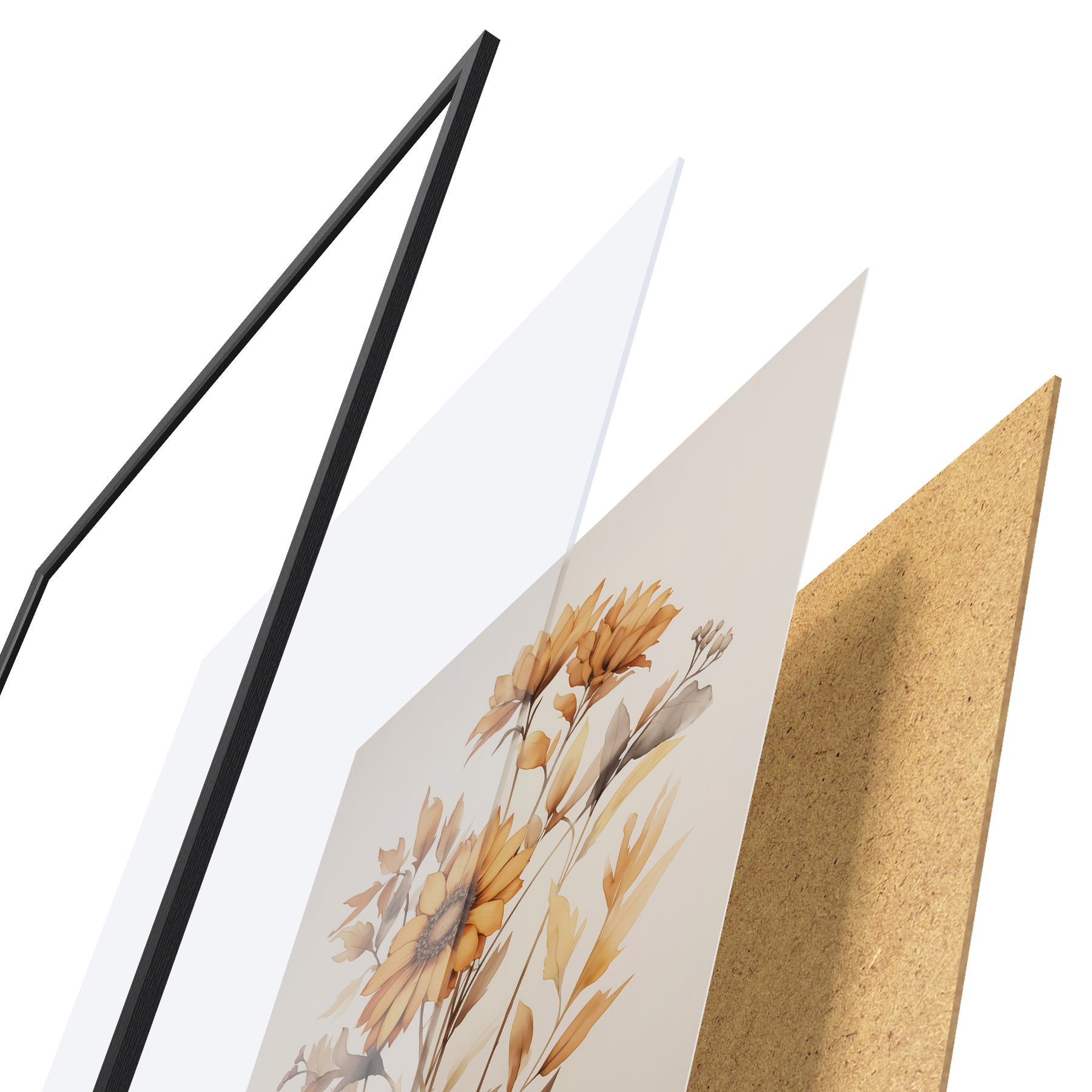 Plakāts sastāv no rāmja, pleksstikla, iespiestā attēla un skaidu plātnes pamatnes. Plakātu var uzreiz piekarināt pie sienas, pateicoties aizmugurē esošajiem stiprinājumiem.
