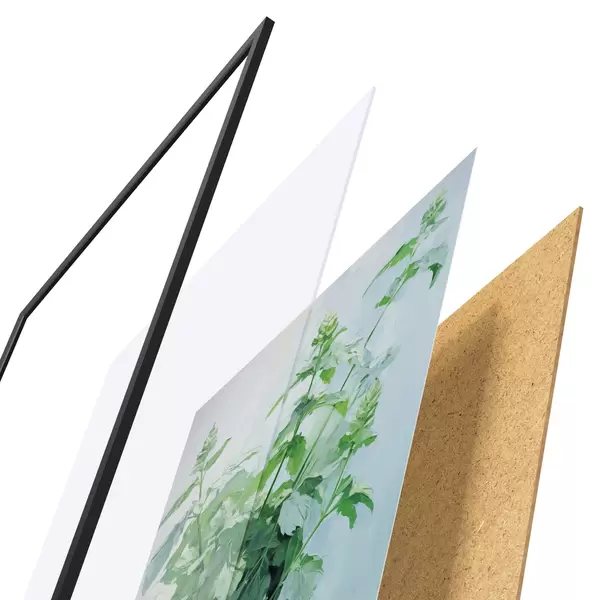 Plakāts sastāv no rāmja, pleksstikla, iespiestā attēla un skaidu plātnes pamatnes. Plakātu var uzreiz piekarināt pie sienas, pateicoties aizmugurē esošajiem stiprinājumiem.