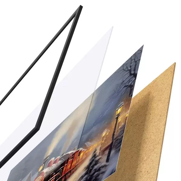 Plakāts sastāv no rāmja, pleksstikla, iespiestā attēla un skaidu plātnes pamatnes. Plakātu var uzreiz piekarināt pie sienas, pateicoties aizmugurē esošajiem stiprinājumiem.