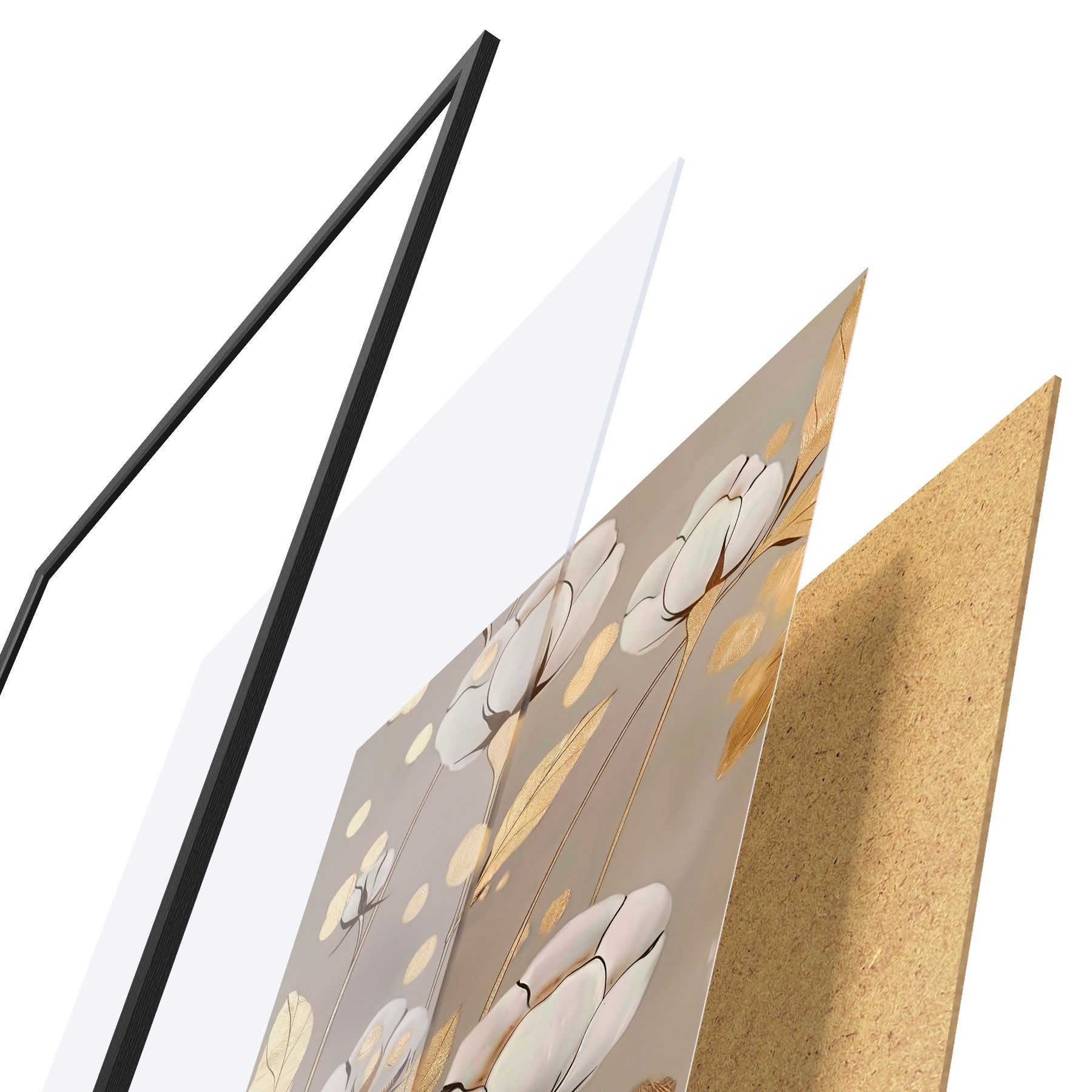 Plakāts sastāv no rāmja, pleksstikla, iespiestā attēla un skaidu plātnes pamatnes. Plakātu var uzreiz piekarināt pie sienas, pateicoties aizmugurē esošajiem stiprinājumiem.