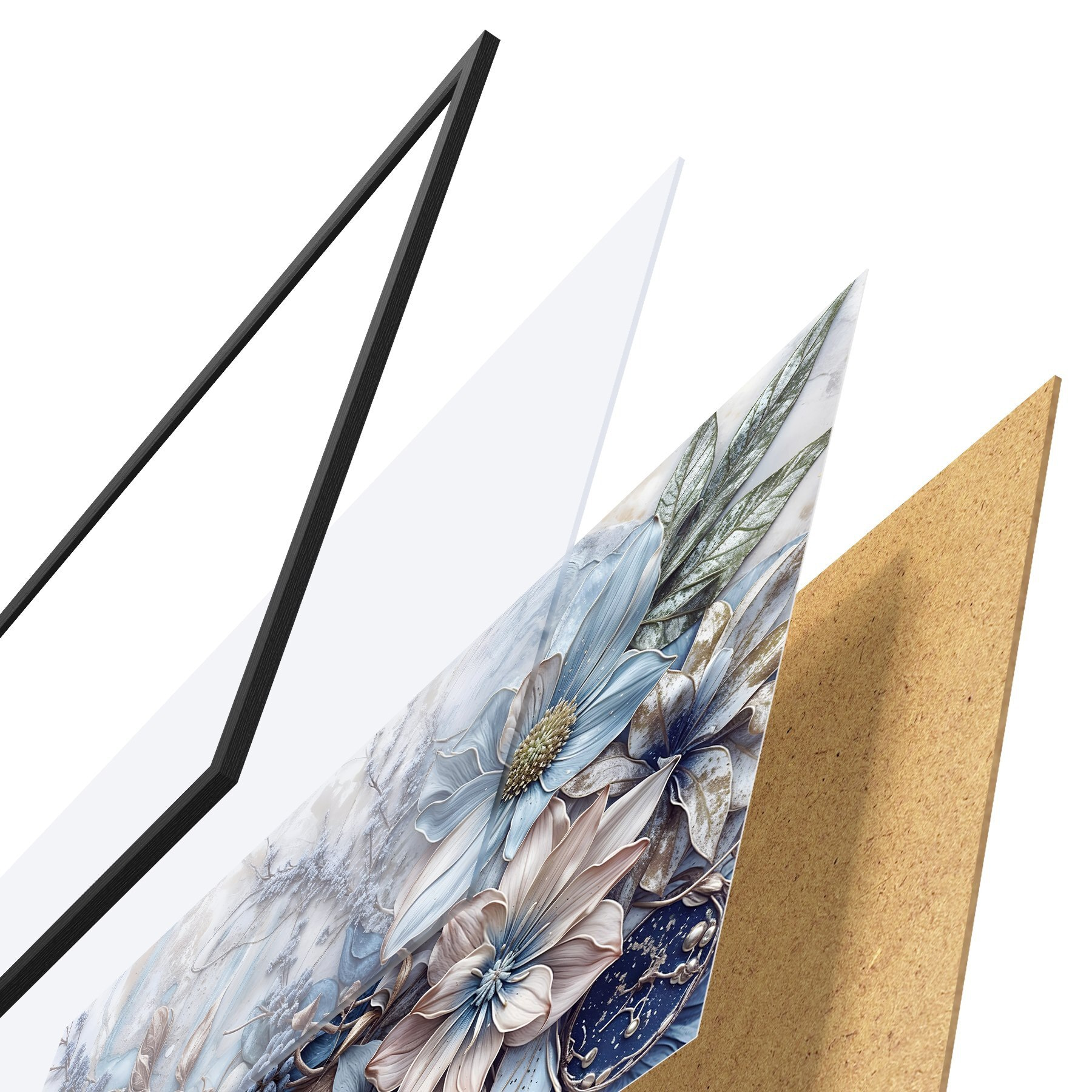 Plakāts Detalizēts teksturēts abstrakts sulīgs ziedu komplekts ar lieliem, spilgtiem ziliem un rozā ziediem, ogām un citiem botāniskajiem elementiem Nr f42210