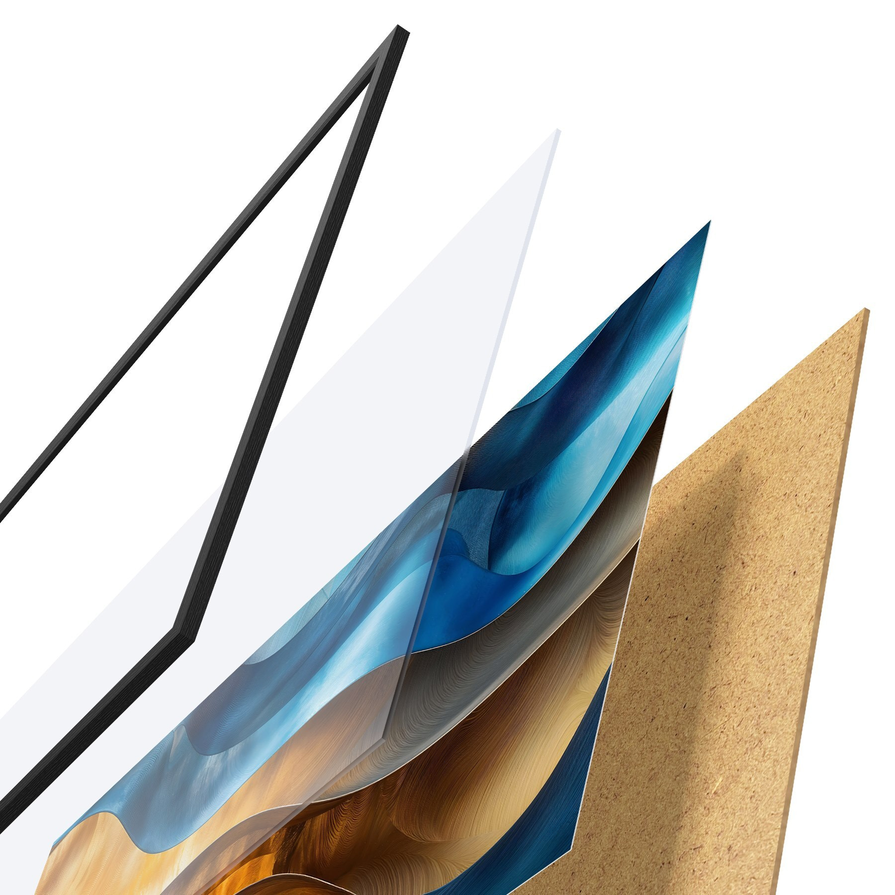 Plakāts sastāv no rāmja, pleksstikla, iespiestā attēla un skaidu plātnes pamatnes. Plakātu var uzreiz piekarināt pie sienas, pateicoties aizmugurē esošajiem stiprinājumiem.