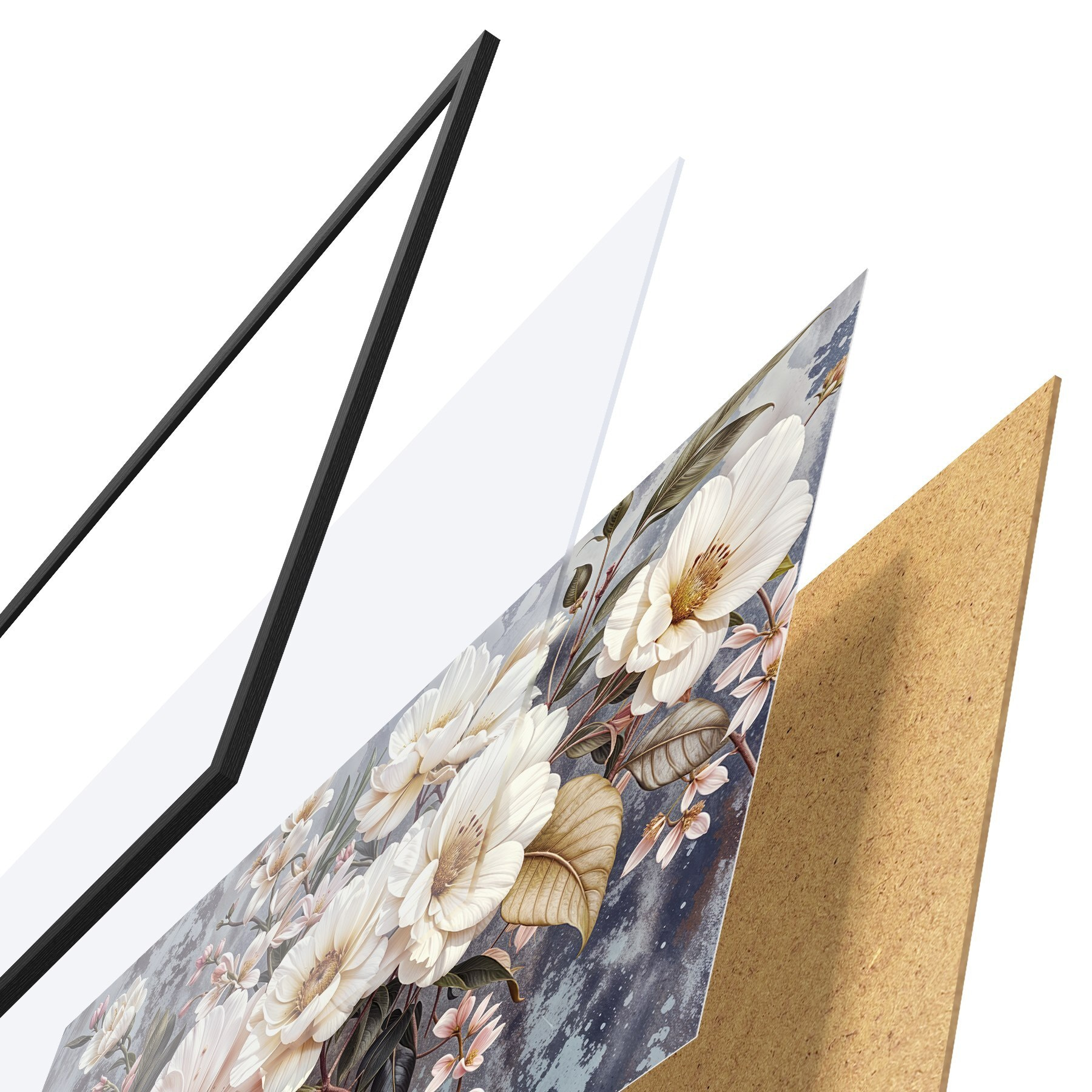 Plakāts sastāv no rāmja, pleksstikla, iespiestā attēla un skaidu plātnes pamatnes. Plakātu var uzreiz piekarināt pie sienas, pateicoties aizmugurē esošajiem stiprinājumiem.