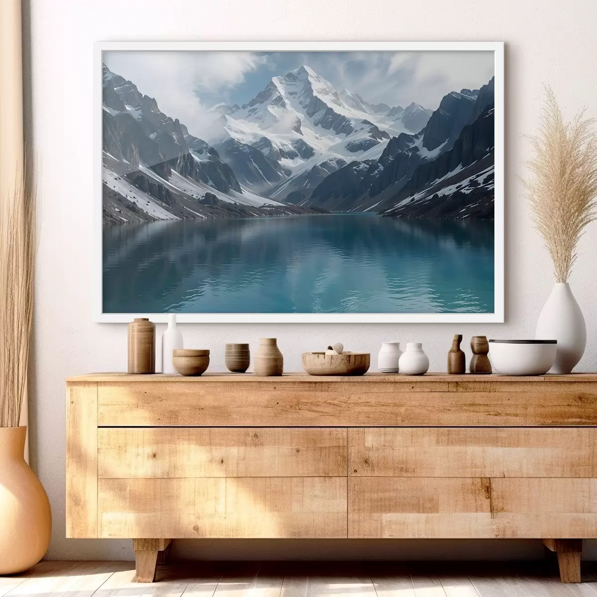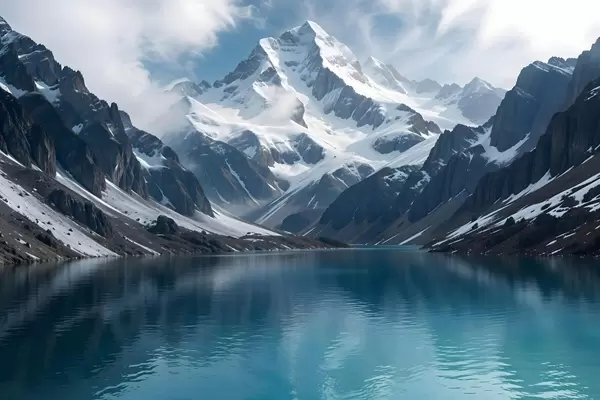 SākumlapaPlakātu katalogsPlakāti dabaPlakāts Sniegota kalna virsotne, kas atspoguļojas mierīgā tirkīza ezerā, ko ieskauj klinšains apvidus un dramatiski mākoņi Nr f42232