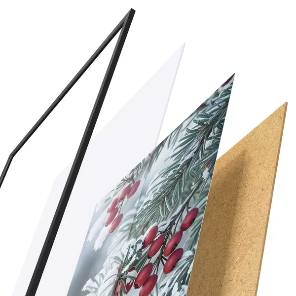 Plakāts sastāv no rāmja, pleksstikla, iespiestā attēla un skaidu plātnes pamatnes. Plakātu var uzreiz piekarināt pie sienas, pateicoties aizmugurē esošajiem stiprinājumiem.