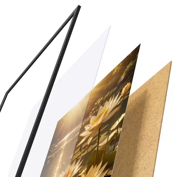 Plakāts sastāv no rāmja, pleksstikla, iespiestā attēla un skaidu plātnes pamatnes. Plakātu var uzreiz piekarināt pie sienas, pateicoties aizmugurē esošajiem stiprinājumiem.