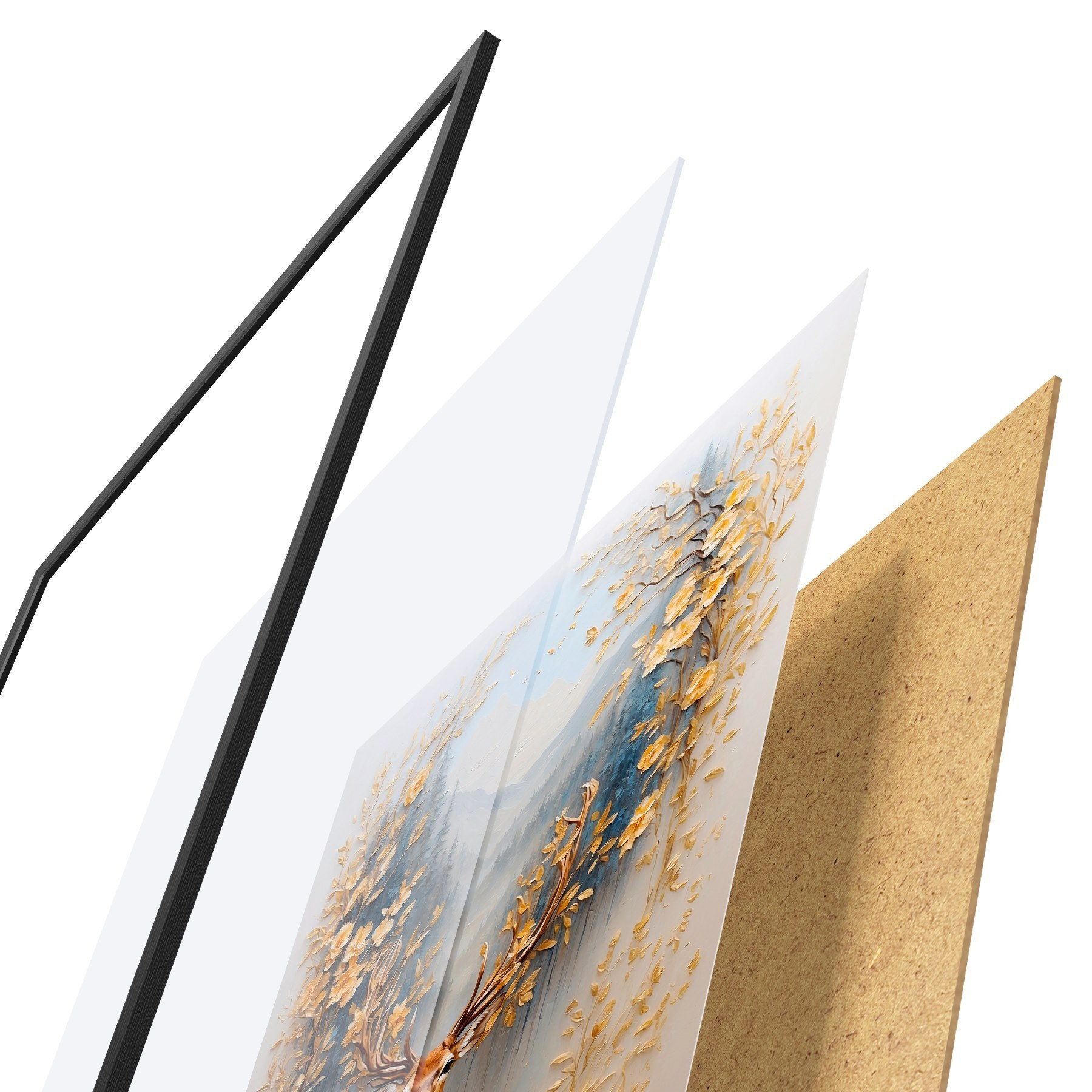 Plakāts sastāv no rāmja, pleksstikla, iespiestā attēla un skaidu plātnes pamatnes. Plakātu var uzreiz piekarināt pie sienas, pateicoties aizmugurē esošajiem stiprinājumiem.