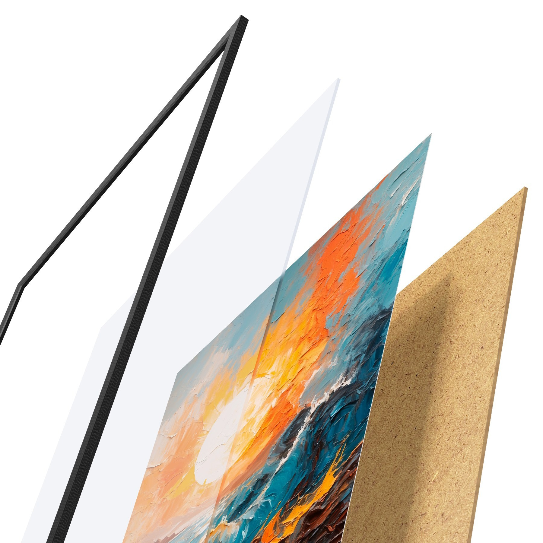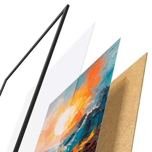 Plakāts sastāv no rāmja, pleksstikla, iespiestā attēla un skaidu plātnes pamatnes. Plakātu var uzreiz piekarināt pie sienas, pateicoties aizmugurē esošajiem stiprinājumiem.