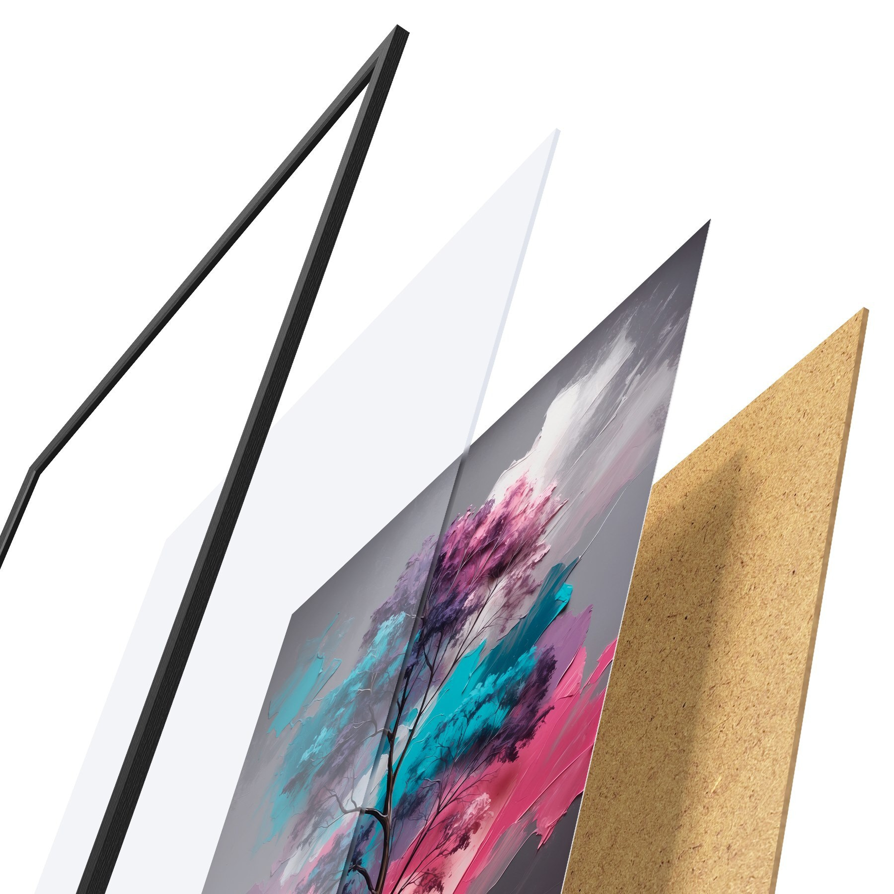 Plakāts sastāv no rāmja, pleksstikla, iespiestā attēla un skaidu plātnes pamatnes. Plakātu var uzreiz piekarināt pie sienas, pateicoties aizmugurē esošajiem stiprinājumiem.