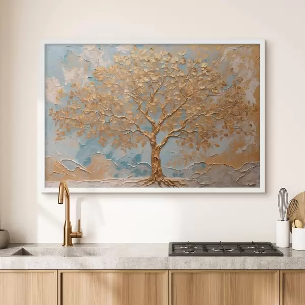 Plakāts Dzeltens koks uz zili balta fona f42266