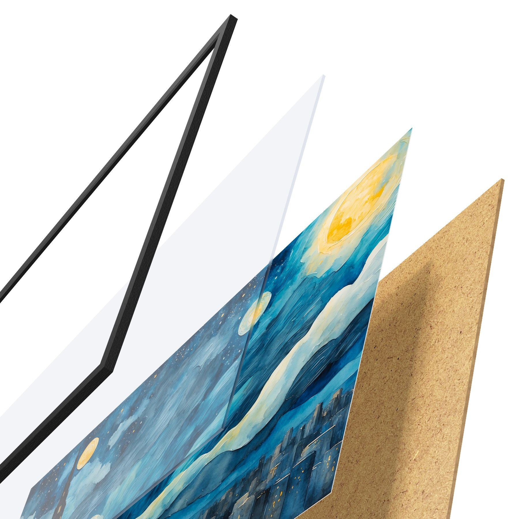 Plakāts sastāv no rāmja, pleksstikla, iespiestā attēla un skaidu plātnes pamatnes. Plakātu var uzreiz piekarināt pie sienas, pateicoties aizmugurē esošajiem stiprinājumiem.