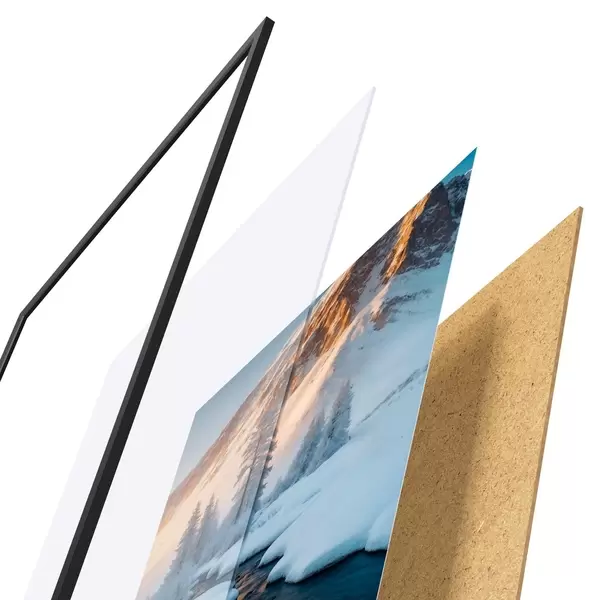 Plakāts sastāv no rāmja, pleksstikla, iespiestā attēla un skaidu plātnes pamatnes. Plakātu var uzreiz piekarināt pie sienas, pateicoties aizmugurē esošajiem stiprinājumiem.