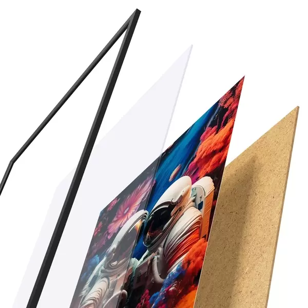 Plakāts sastāv no rāmja, pleksstikla, iespiestā attēla un skaidu plātnes pamatnes. Plakātu var uzreiz piekarināt pie sienas, pateicoties aizmugurē esošajiem stiprinājumiem.