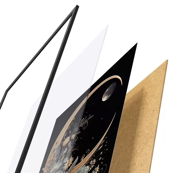 Plakāts sastāv no rāmja, pleksstikla, iespiestā attēla un skaidu plātnes pamatnes. Plakātu var uzreiz piekarināt pie sienas, pateicoties aizmugurē esošajiem stiprinājumiem.