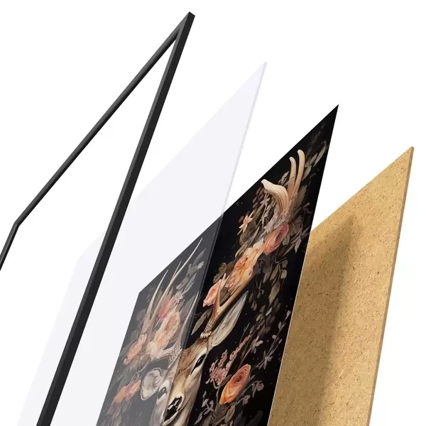 Plakāts sastāv no rāmja, pleksstikla, iespiestā attēla un skaidu plātnes pamatnes. Plakātu var uzreiz piekarināt pie sienas, pateicoties aizmugurē esošajiem stiprinājumiem.