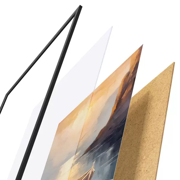 Plakāts sastāv no rāmja, pleksstikla, iespiestā attēla un skaidu plātnes pamatnes. Plakātu var uzreiz piekarināt pie sienas, pateicoties aizmugurē esošajiem stiprinājumiem.