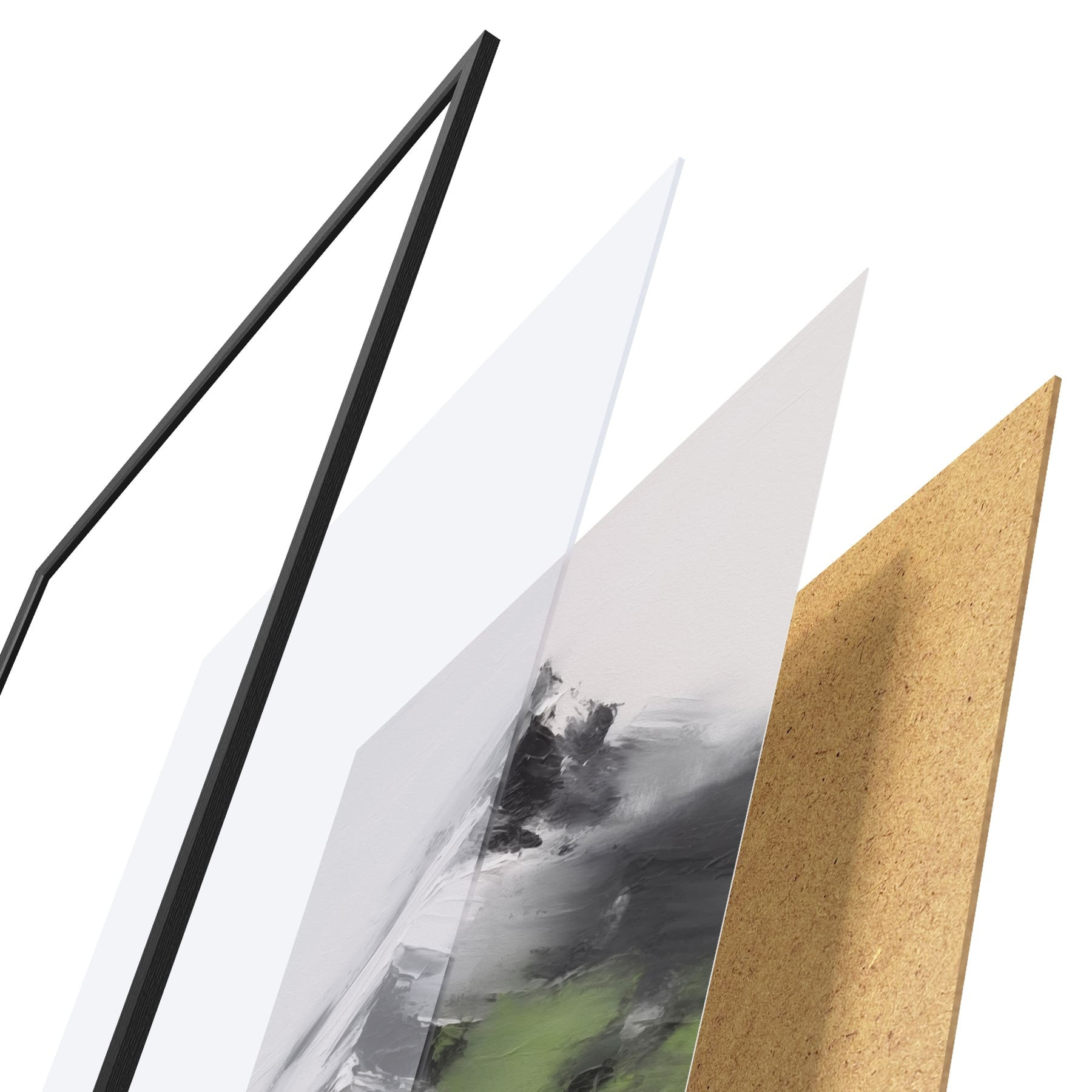 Plakāts sastāv no rāmja, pleksstikla, iespiestā attēla un skaidu plātnes pamatnes. Plakātu var uzreiz piekarināt pie sienas, pateicoties aizmugurē esošajiem stiprinājumiem.
