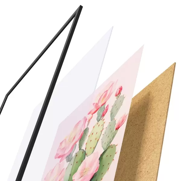 Plakāts sastāv no rāmja, pleksstikla, iespiestā attēla un skaidu plātnes pamatnes. Plakātu var uzreiz piekarināt pie sienas, pateicoties aizmugurē esošajiem stiprinājumiem.