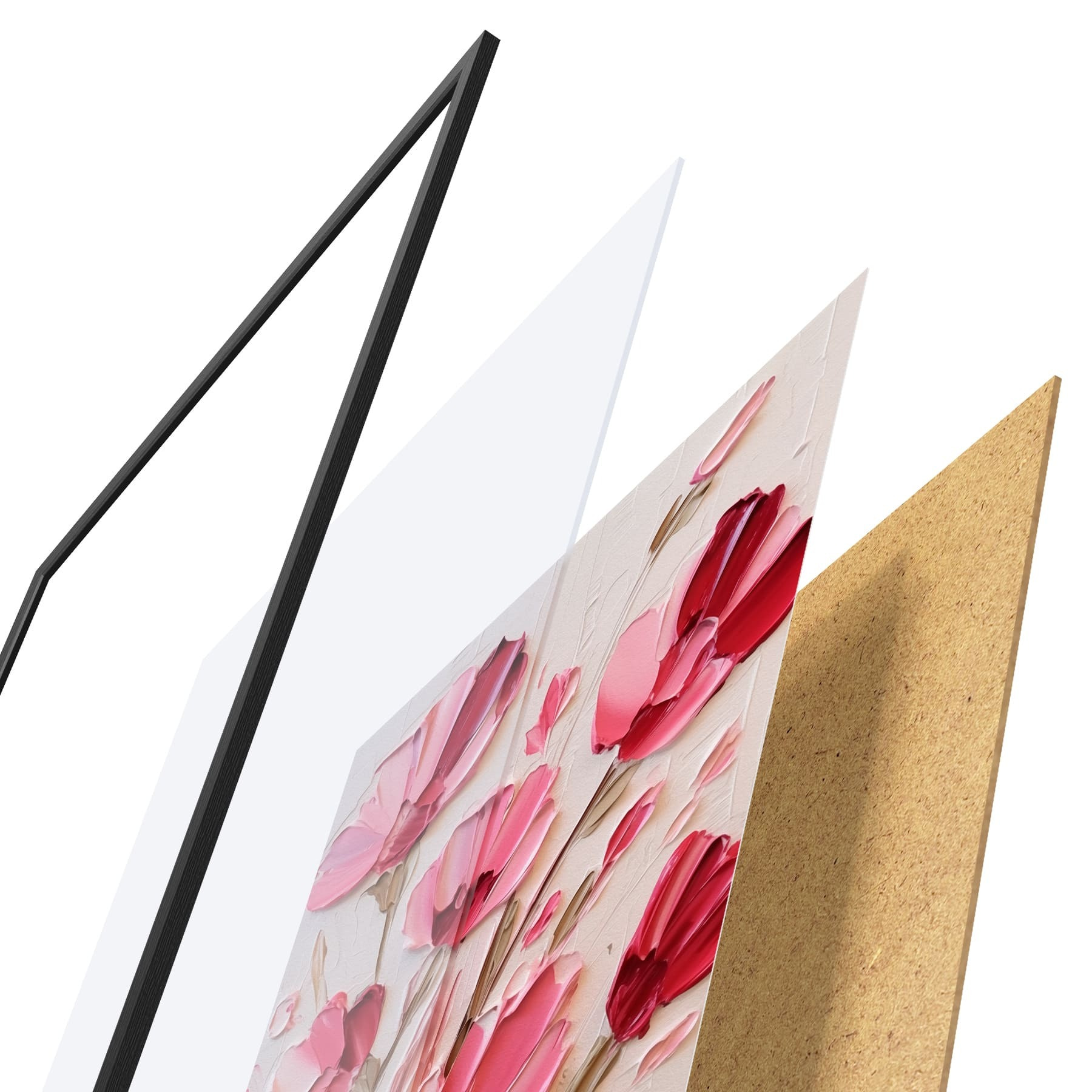 Plakāts sastāv no rāmja, pleksstikla, iespiestā attēla un skaidu plātnes pamatnes. Plakātu var uzreiz piekarināt pie sienas, pateicoties aizmugurē esošajiem stiprinājumiem.