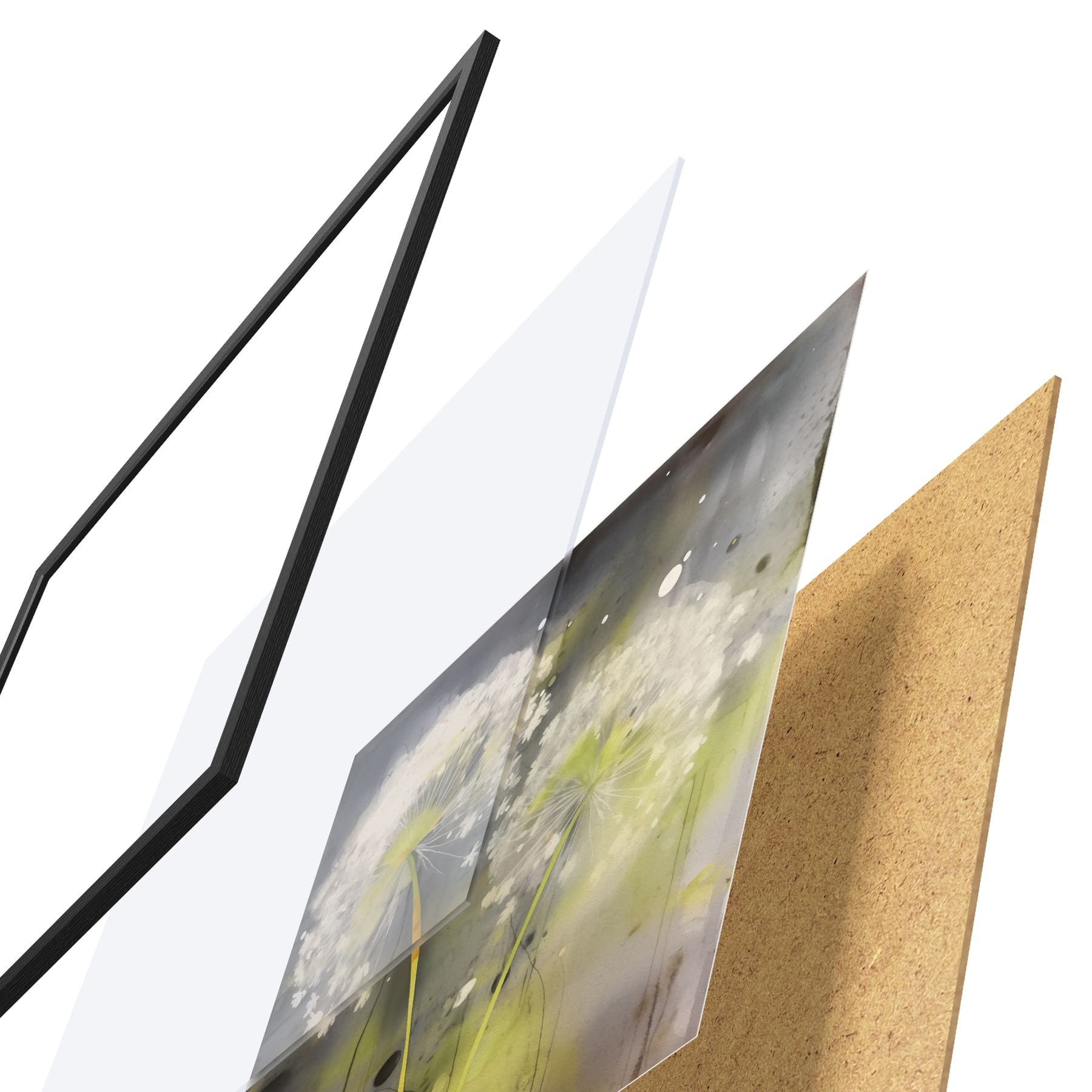 Plakāts sastāv no rāmja, pleksstikla, iespiestā attēla un skaidu plātnes pamatnes. Plakātu var uzreiz piekarināt pie sienas, pateicoties aizmugurē esošajiem stiprinājumiem.