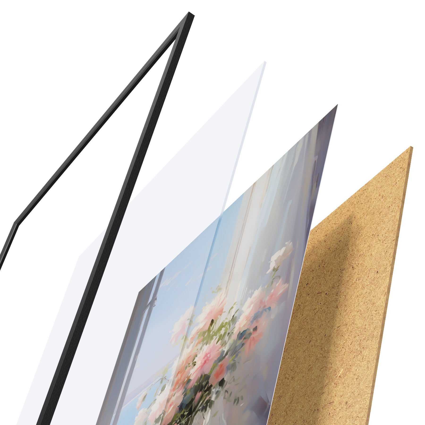 Plakāts sastāv no rāmja, pleksstikla, iespiestā attēla un skaidu plātnes pamatnes. Plakātu var uzreiz piekarināt pie sienas, pateicoties aizmugurē esošajiem stiprinājumiem.