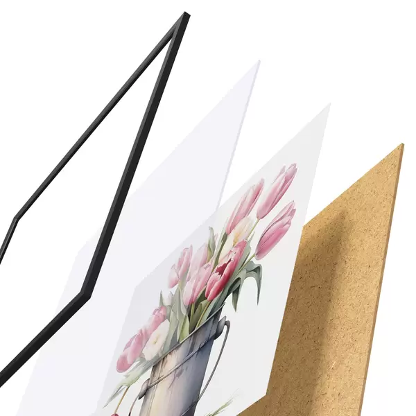 Plakāts sastāv no rāmja, pleksstikla, iespiestā attēla un skaidu plātnes pamatnes. Plakātu var uzreiz piekarināt pie sienas, pateicoties aizmugurē esošajiem stiprinājumiem.