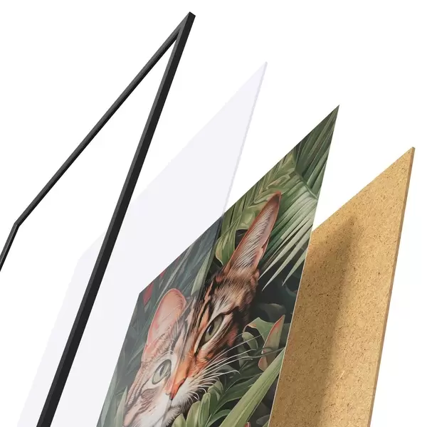 Plakāts sastāv no rāmja, pleksstikla, iespiestā attēla un skaidu plātnes pamatnes. Plakātu var uzreiz piekarināt pie sienas, pateicoties aizmugurē esošajiem stiprinājumiem.