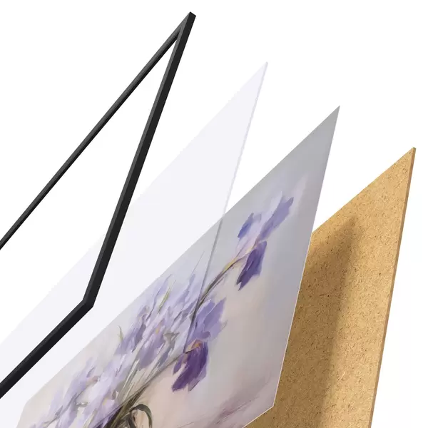 Plakāts sastāv no rāmja, pleksstikla, iespiestā attēla un skaidu plātnes pamatnes. Plakātu var uzreiz piekarināt pie sienas, pateicoties aizmugurē esošajiem stiprinājumiem.