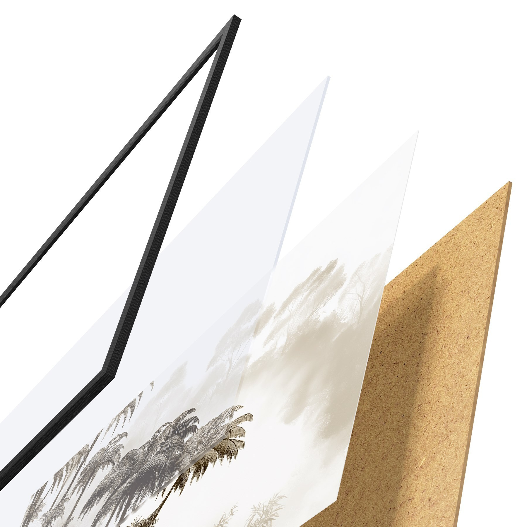 Plakāts sastāv no rāmja, pleksstikla, iespiestā attēla un skaidu plātnes pamatnes. Plakātu var uzreiz piekarināt pie sienas, pateicoties aizmugurē esošajiem stiprinājumiem.