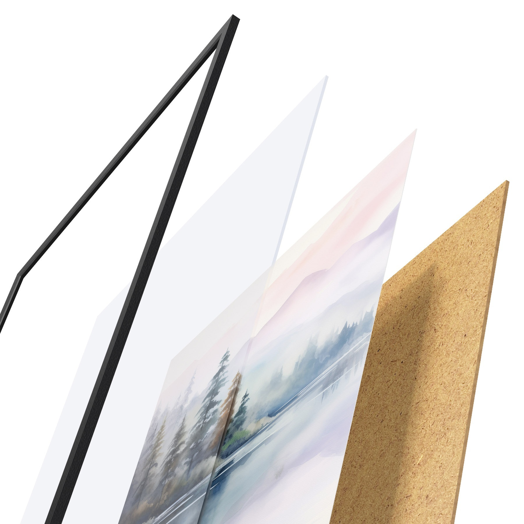 Plakāts sastāv no rāmja, pleksstikla, iespiestā attēla un skaidu plātnes pamatnes. Plakātu var uzreiz piekarināt pie sienas, pateicoties aizmugurē esošajiem stiprinājumiem.