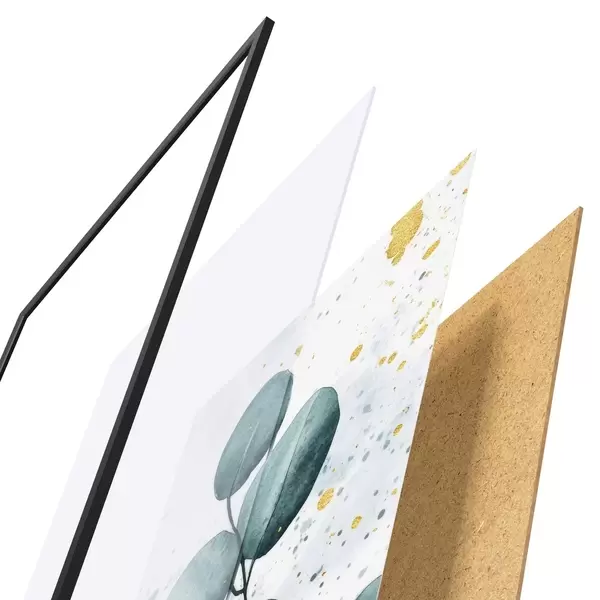Plakāts sastāv no rāmja, pleksstikla, iespiestā attēla un skaidu plātnes pamatnes. Plakātu var uzreiz piekarināt pie sienas, pateicoties aizmugurē esošajiem stiprinājumiem.
