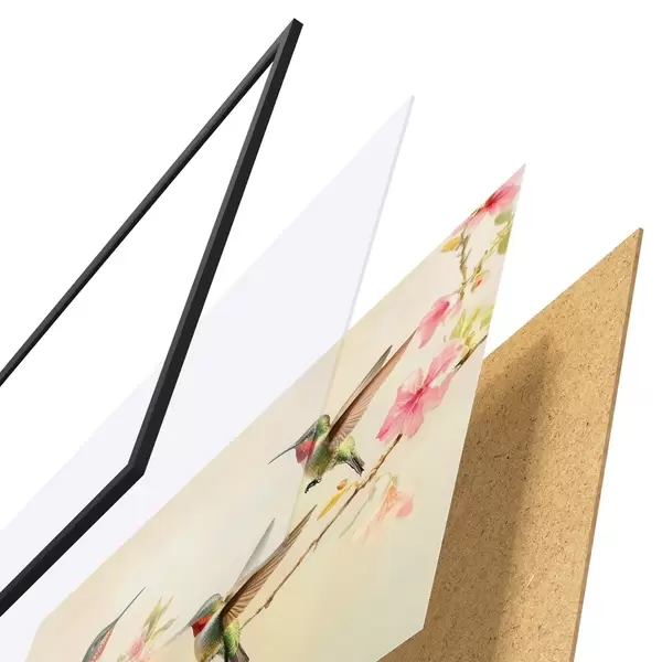 Plakāts sastāv no rāmja, pleksstikla, iespiestā attēla un skaidu plātnes pamatnes. Plakātu var uzreiz piekarināt pie sienas, pateicoties aizmugurē esošajiem stiprinājumiem.