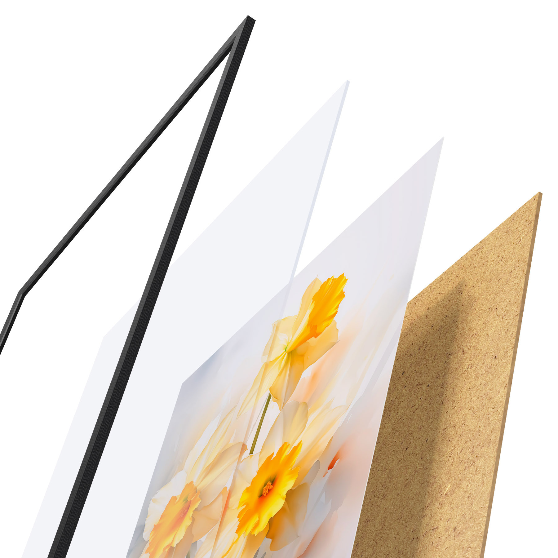 Plakāts sastāv no rāmja, pleksstikla, iespiestā attēla un skaidu plātnes pamatnes. Plakātu var uzreiz piekarināt pie sienas, pateicoties aizmugurē esošajiem stiprinājumiem.