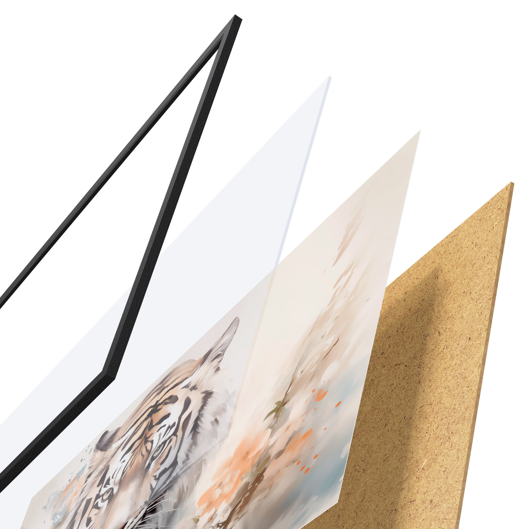 Plakāts sastāv no rāmja, pleksstikla, iespiestā attēla un skaidu plātnes pamatnes. Plakātu var uzreiz piekarināt pie sienas, pateicoties aizmugurē esošajiem stiprinājumiem.