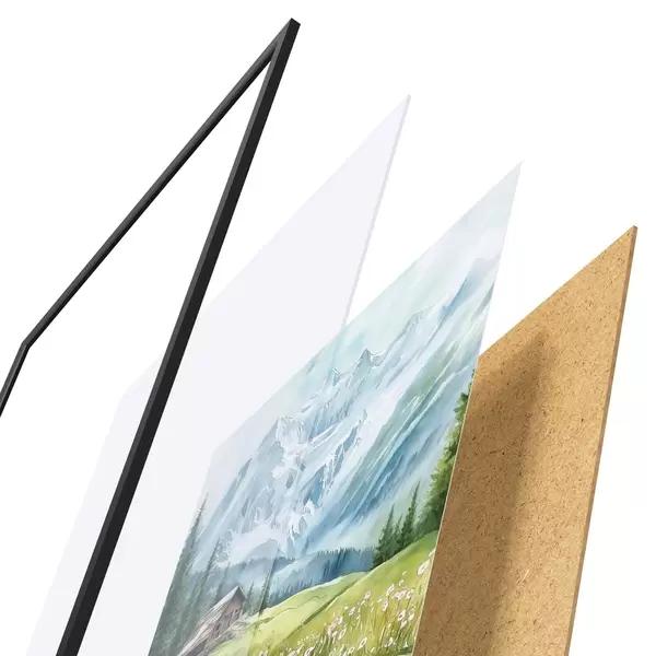 Plakāts sastāv no rāmja, pleksstikla, iespiestā attēla un skaidu plātnes pamatnes. Plakātu var uzreiz piekarināt pie sienas, pateicoties aizmugurē esošajiem stiprinājumiem.